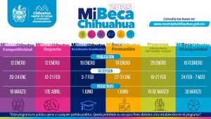 * Discapacidad: convocatoria 16 de febrero, documentación 24 de febrero al 7 de marzo y resultados el 30 de marzo (dirigida a personas con credencial de discapacidad vigente, sin edad específica y que vivan en la ciudad de Chihuahua).