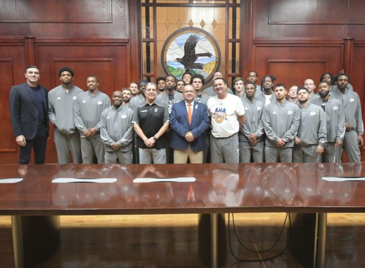 Previo al partido de hoy sábado en el gimnasio universitario Manuel Bernardo Aguirre, los jugadores de basquetbol...