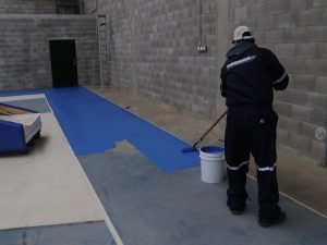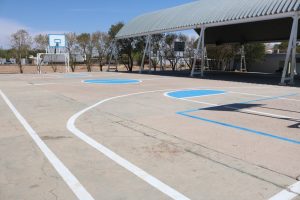Fueron aplicados trabajos de pintura en canchas de usos múltiples, futbol rápido, básquetbol, handball, tenis, frontón, de patinaje y en gradería, así como la instalación de nuevos tableros de básquetbol y reparación de malla perimetral de canchas y porterías.