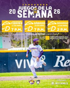 Dorados abrirá campaña el 17 de abril en la serie de visita ante Caliente de Durango, mientras que el juego inaugural en el Estadio Monumental será el 24 de abril ante los Sultanes de Monterrey.