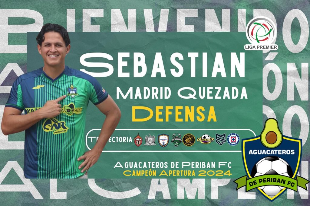 El futbolista chihuahuense originario de esta capital Sebastián Madrid Quezada ha sido anunciado de manera oficial como nuevo jugador del equipo Aguacateros de Peribán FC actual campeón del torneo de la Liga Premier del futbol mexicano y estará en acción para la temporada de Clausura 2024.