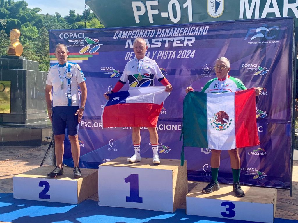 El pedalista chihuahuense Humberto “Billetero” Lucio García se agenció la medalla de bronce subiendo al podio de ganadores dentro de la segunda jornada de actividades del Campeonato Panamericano de Ciclismo Máster 2024 que se desarrolla en la ciudad de San Salvador, El Salvador.